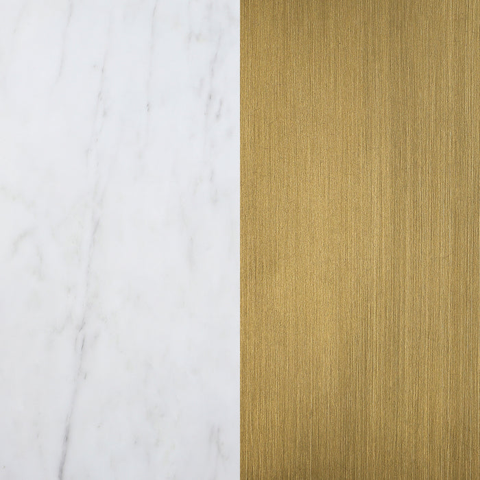 Freshen up your elegant dining room with the luxurious look and feel of genuine marble. This modern dining table pairs a round silhouette with beautiful white marble complete with light grey veining that offers organic elegance and dimensionality. This striking table stands on a conical pedestal base that receives a gleaming gold finish that radiates warmth and sophistication. This table is a stunning addition in a formal dining space, offering refined character to family and friends. The pairing of cool marble and warm brushed gold strikes a perfect balance. Key Features: • Sculptural silhouette perfectly enhances a round marble dining table with modern glam allure • Round table top crafted from luxurious white marble that brings subtle texture and dimension • Conical base adds impactful, sculpted flair, perfect for formal spaces with inviting ambiance • Pedestal features a gleaming metallic brushed gold finish that's rich and warm • Perfect for daily or occasional use in a sophisticated dining room or elegant eat-in kitchen