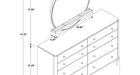 This mid-century modern dresser and mirror set blends elegant design with versatile functionality. The eight-drawer dresser features a wire-brushed sand wash finish, aged brass knobs, and slender metal legs for a refined touch. Felt-lined top drawers offer safe storage for delicate items, while softly rounded corners add subtle sophistication. Above, the round mirror includes a felt-lined tray and can be mounted to the dresser or hung independently on the wall, offering flexible styling and practical beauty for any bedroom._x005F_x000D_ Key Features: • Eight-drawer dresser in sand wash wire-brushed finish for natural texture • Aged brass knobs and slim metal legs offer modern mid-century charm • Felt-lined top drawers protect jewelry and delicate accessories • Round mirror includes felt-lined tray for storage and display • Mirror mounts to matching dresser or hangs freely on the wall • Crafted from rubberwood, engineered wood, and ash veneer