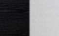 Inspired by trending interior design aesthetics increasingly mixing modern and traditional elements to invent its own style, this five-piece wood dining set stands out to impress. Crisp, clean style and a contrasting color and finish palette begin the dramatic look of a set suitable for both modern and transitional settings important to your everyday living. Distressed black finish wood construction on all pieces gains attention to a minimalist table design with straight, flat leg sections under a sleek top with linear silhouetting and a dimensional top chamfer curving along its edges. Chairs offer a clean silhouette with black finish wood framing, tapered legs, and ornate notched tops with linear carvings thrown in for extra dimension. Soft ivory fabric upholstery is intriguingly placed on both sides of top cushions and over a padded seat. Key Features: • Modern or transitional spaces embrace a five-piece dining set with a simple motif and contrasting finishes/colors • Contemporary style weaves together linear silhouetting in a table with slight top chamfer curving • Black finish wood construction with wire brush distressing is bold, versatile, and textural • A convenient removable tabletop leaf extends length by 18 inches to accommodate a larger party • Chair design features a bordered look with contrasting black wood finish and soft ivory upholstery • Crisp geometric chair top emblems add a textural look with vertical grooves and notched edges