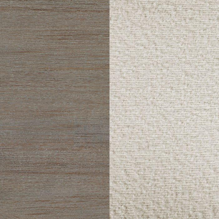 Trestle inspired style brings charming character to a five-piece modern farmhouse dining room set. It focuses on a rectangular dining table, complete with four side chairs that create a cohesive look with a casual coastal grey finish. Cream upholstery adds a fresh, bright touch, perfect for an inviting kitchen or dining room. Chairs feature modified ladder backs, offering artisan appeal, while the decorative table base instills the perfect touch of dimensionality. Foam padding adds comfort to seats, perfect for family and friends to enjoy a meal and conversation. Key Features: • Approachable modern farmhouse style infuses a rectangular wood dining table and four side chairs • Features acacia veneer over acacia wood and MDF to create stability and style • Coastal grey wood grain finish is light and on-trend, perfect for casual family dining spaces • Angular supports and trestle details create a sense of texture and dimension for an artisan look • Chairs showcase a charming ladderback design with creamy white upholstery over padded seats